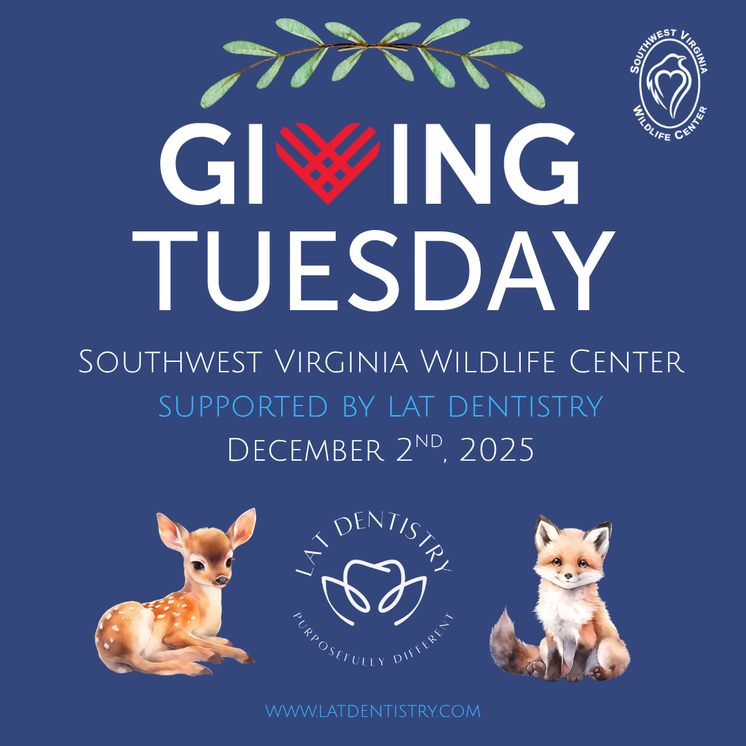 Traditionally observed on the Tuesday after Thanksgiving, Giving Tuesday is a movement that seeks to inspire generosity around the world! At LAT Dentistry, we believe each individual has the unique ability to change lives through their actions, whether it’s helping a neighbor with a task or supporting your favorite charity. On this Giving Tuesday, LAT Dentistry has partnered with the Southwest Virginia Wildlife Center by matching, dollar-for-dollar, each donation made...up to $10,000! We are so fortunate to live in an area abundant with natural beauty and feel compelled to support not only our fellow humans, but also the wildlife with whom we share our environment. The Southwest Virginia Wildlife Center selflessly works to help local wildlife, and they need YOUR support! Donations made to the center directly support efforts to provide expert medical care to injured and orphaned animals, deliver public education programs that inspire coexistence with wildlife, train future conservationists, and more. If you feel called to do so, we encourage you to make a donation on Tuesday, December 2nd and we will match it! This means your gift will be doubled and will do twice as much good for wildlife in need. Together, we can help nurture the environment we call home!
